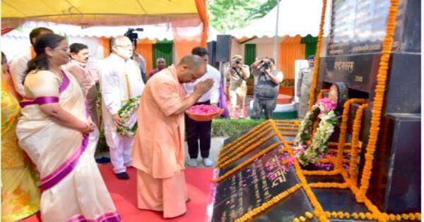 लखनऊ की शहीद स्मृति वाटिका में आयोजित समारोह में मुख्यमंत्री योगी आदित्यनाथ ने शहीदों को पुष्पांजलि अर्पित कर श्रद्धांजलि दी। मंच पर पहुंचते ही उन्होंने सबसे पहले शहीदों के चित्र पर माल्यार्पण किया और फिर ‘भारत माता की जय’ और ‘वीर शहीद अमर रहें’ के नारों से माहौल गूंज उठा।