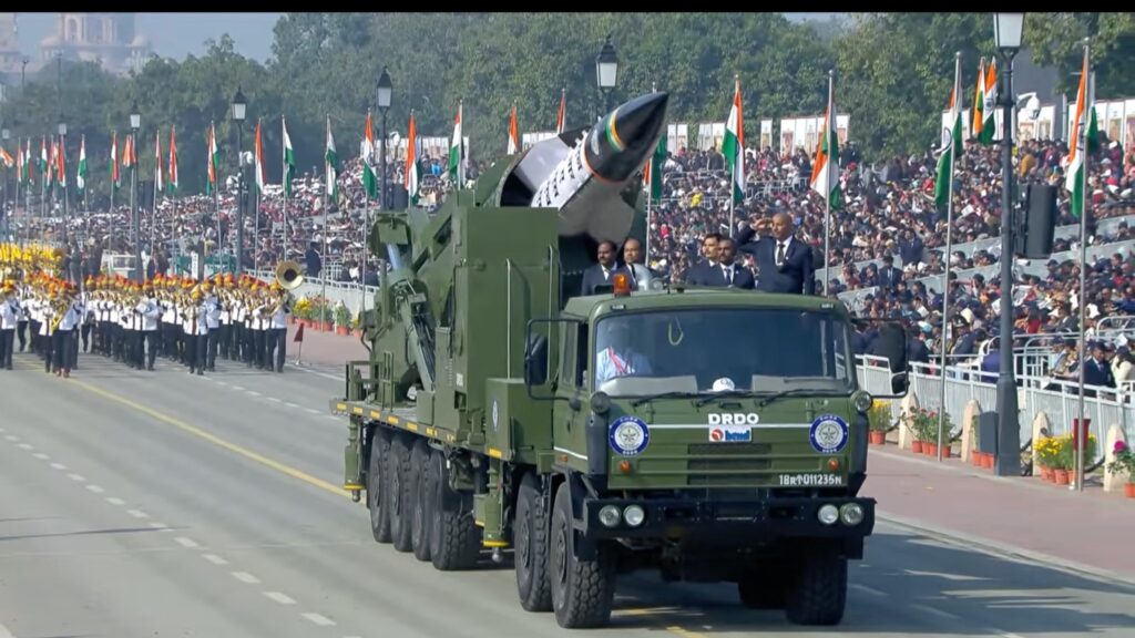 परेड में भारत की रक्षा आत्मनिर्भरता का स्पष्ट संदेश देखने को मिला। ब्रह्मोस मिसाइल, आकाश एयर डिफेंस सिस्टम, सूर्यास्त्र रॉकेट लॉन्चर, धनुष तोप, ATAGS, MRSAM और अर्जुन युद्धक टैंक जैसे अत्याधुनिक हथियारों ने परेड की शोभा बढ़ाई। भारी बख्तरबंद सैन्य वाहनों ने सेना की ताकत का प्रदर्शन किया। परेड के समापन पर भारतीय वायुसेना ने आसमान में अद्भुत शक्ति प्रदर्शन किया। राफेल, सुखोई-30, मिग-29 और जैगुआर समेत 29 लड़ाकू विमानों ने एक साथ उड़ान भरी और ‘ऑपरेशन सिंदूर’ थीम पर विशेष फॉर्मेशन बनाया। इस ऐतिहासिक पल के साक्षी करीब 30 हजार लोग बने।