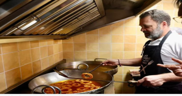 - मिठाई बनाते दिखे राहुल गांधी