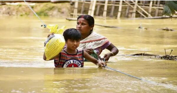 खेत, घर, स्कूल और बाजारों में घुटनों तक पानी भर गया है