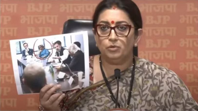 ईरानी ने तीखा हमला करते हुए राहुल गांधी और सुनीता विश्वनाथ से अमेरिका में उनकी मुलाकात पर सवाल उठाए। ईरानी ने फोटो दिखाते हुए कहा कि राहुल गांधी अमेरिका में एक महिला सुनीता विश्वनाथ के साथ बैठे हैं, जो महिला जॉर्ज सोरोस द्वारा फाइनेंशियली फंडेड है। इसका खुलासा केवल राहुल गांधी ही कर सकते हैं कि उनके बीच क्या बात हुई है। स्मृति ईरानी ने कहा कि जॉर्ज सोरोस और उनके द्वारा फंडेड संगठनां का राहुल गांधी से तल्लुक कोई नया नहीं है बल्कि पुरा है। एक और प्रकाशन में स्पष्ट हुआ है कि सलील सेठी नाम एक व्यक्ति जजो ओपन सोसायटी के ग्लोबल अध्यक्ष हैं,वो जॉर्ज सोरोस के संस्थान के साथ है और राहुल गांधी की भारत जोड़ो यात्रा में भी साथ थे।