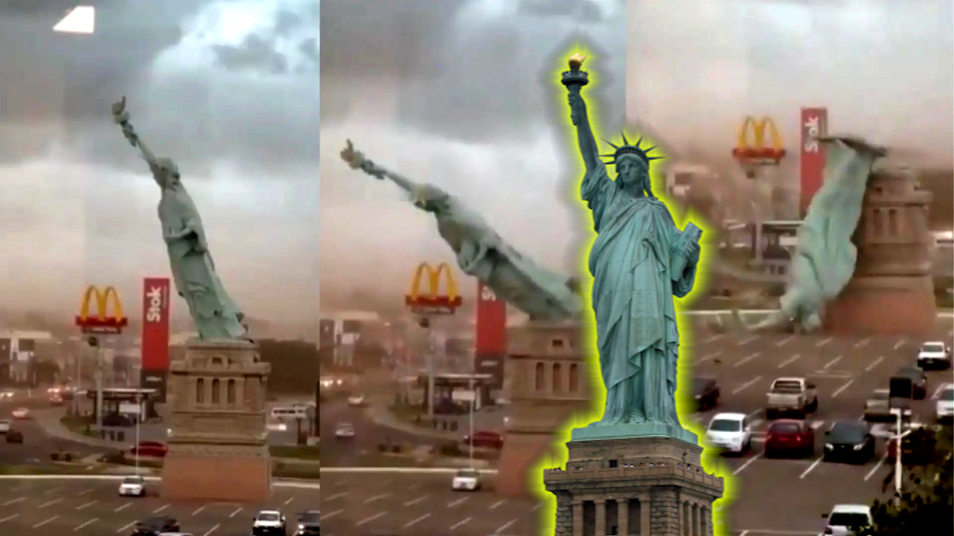 दक्षिणी ब्राजील के गुआबा में एक बड़े तूफान ने रियो ग्रांडे डो सुल में हैवन के मेगास्टोर के सामने लगी स्टैच्यू ऑफ लिबर्टी की 24 मीटर ऊंची प्रतिकृति को गिरा दिया।