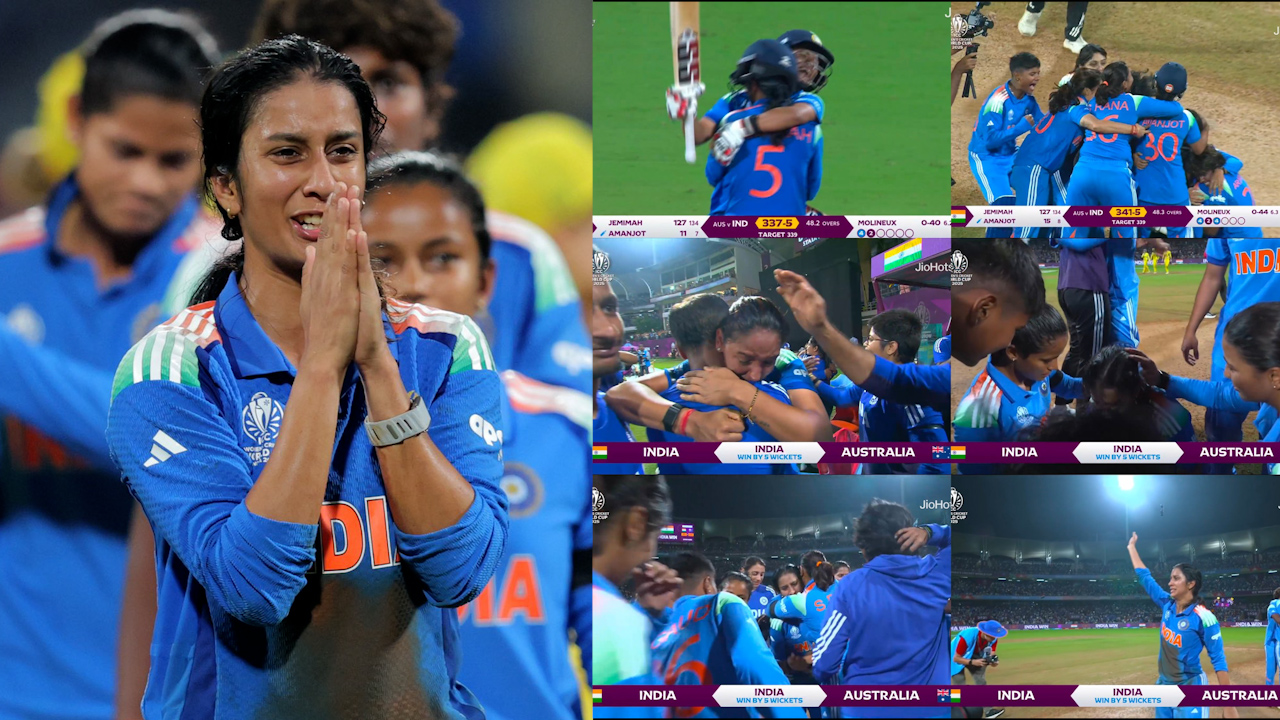 मैच खत्म होते ही जेमिमा रोड्रिग्ज खुशी से फूट-फूटकर रो पड़ीं। उनकी आंखों से बहते आंसू सिर्फ भावनाओं के नहीं, बल्कि संघर्ष, मेहनत और विश्वास की जीत के प्रतीक थे। कप्तान हरमनप्रीत भी अपने आंसू नहीं रोक पाईं और पूरी टीम ने मैदान पर गले लगकर इस ऐतिहासिक जीत का जश्न मनाया।