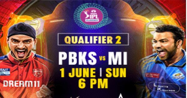 इंडियन प्रीमियर लीग Indian Premier League 2025 अब अपने अंतिम चरण में है। आज रविवार 1 जून 2025 को गुजरात के अहमदाबाद में स्थित नरेंद्र मोदी स्टेडियम में मुंबई इंडियंस MI और पंजाब किंग्स PBKS के बीच क्वालीफायर-2 का मुकाबला खेला जाना है। आज होने वाला यह मैच फाइनल की टिकट के लिए निर्णायक साबित होगा। आज के मैच में जो टीम जीत हासिल करेगी, वह मंगलवार 3 जून 2025 को खेले जाने वाले फाइनल मुकाबले में रॉयल चैलेंजर्स बैंगलोर (RCB) से भिड़ेगी।