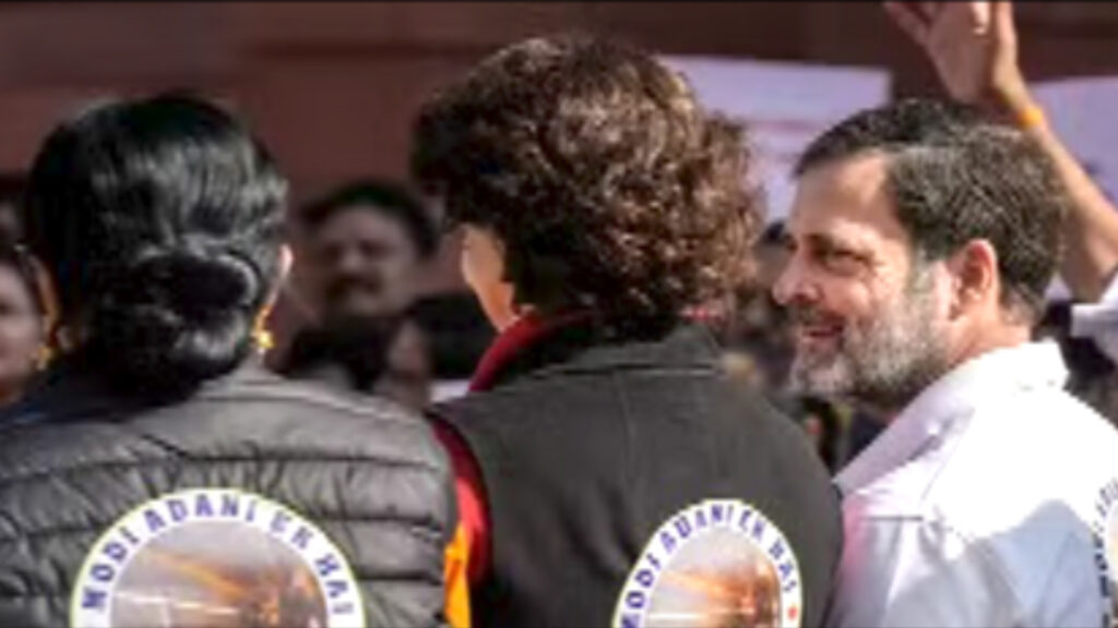 संसद के बाहर जोरदार विरोध प्रदर्शन में, राहुल गांधी और प्रियंका गांधी वाद्रा समेत कई विपक्षी सांसद “मोदी-अडानी एक हैं” नारे से सजी हाफ जैकेट पहनकर एकत्र हुए। उनके प्रदर्शन का उद्देश्य अडानी समूह से जुड़े धोखाधड़ी के आरोपों की जांच के लिए एक संयुक्त संसदीय समिति (जेपीसी) के गठन पर दबाव डालना था।
