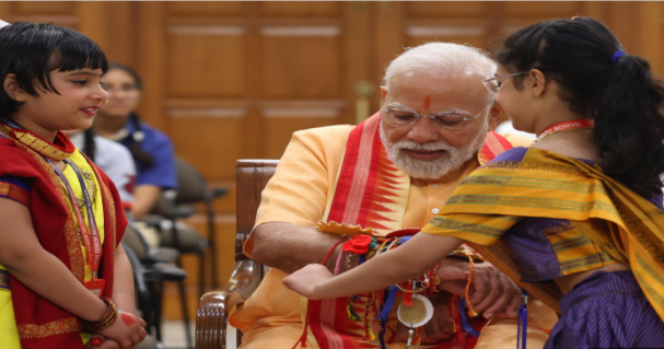 PM Modi Raksha Bandhan राखियों से सजी पीएम मोदी की कलाई, बच्चियों संग रक्षाबंधन मनाया…