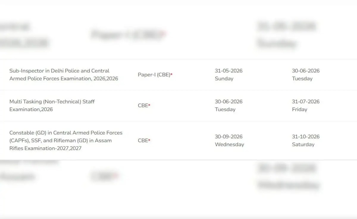 SSC कैलेंडर में GD कॉन्स्टेबल, दिल्ली पुलिस और CAPFs में सब-इंस्पेक्टर, स्टेनोग्राफर और MTS जैसी परीक्षाओं की तारीखों को भी संशोधित किया गया है। सब-इंस्पेक्टर परीक्षा के लिए नोटिफिकेशन 31 मई 2026 और आवेदन की अंतिम तिथि 30 जून 2026 रखी गई है। वहीं MTS परीक्षा के लिए आवेदन 30 जून से 31 जुलाई 2026 तक किए जा सकेंगे। GD कॉन्स्टेबल भर्ती के लिए आवेदन 30 सितंबर से 31 अक्टूबर 2026 तक होंगे।