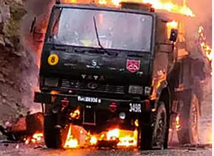 जम्मू-कश्मीर में 20 अ्प्रैल को सेना के एक वाहन में आग लग गई। इस घटना में 5 जवान शहीद हो गए। साथ ही एक जवान गंभीर रूप से घायल हो गया। सेना के एक अस्पताल में उसका इलाज चल रहा है। बताया गया है कि यह घटना एक आतंकी हमला है। पीपुल्स एंटी-फासिस्ट फ्रंट (PAFF) ने हमले की जिम्मेदारी ली है।