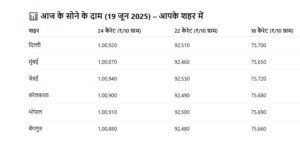 आज 19 जून 2025 को भारत में सोने और चांदी के भाव में फिर तेजी देखने को मिली है। बीते दिन जहां सोने की कीमतों में हल्की गिरावट आई थी, वहीं चांदी के दाम में उछाल देखा गया था। लेकिन आज दोनों कीमती धातुओं में मजबूती के साथ व्यापार हुआ।