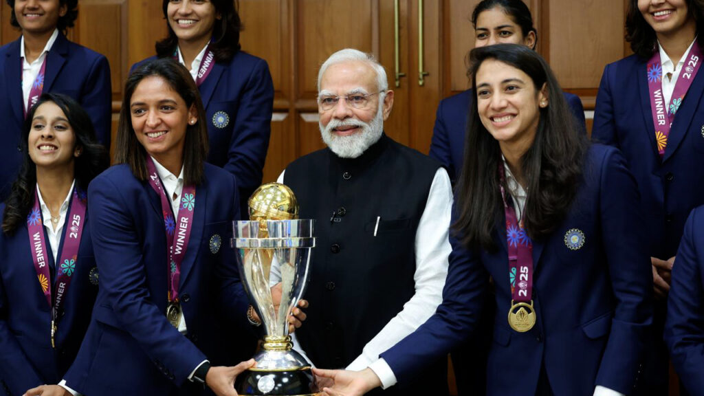 ‘प्लेयर ऑफ द टूर्नामेंट’ दीप्ति शर्मा, जिन्होंने इस बार 215 रन और 22 विकेट लिए, ने बताया कि वह प्रधानमंत्री से मिलने का बेसब्री से इंतजार कर रही थीं। उन्होंने कहा, “2017 में मोदी जी ने कहा था कि मेहनत करती रहो, सपना जरूर पूरा होगा — और आज वही सपना साकार हुआ।”