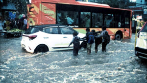 सड़कें बनीं नदी जैसी – कश्मीरी गेट, राजघाट और आईटीओ के नजदीकी क्षेत्रों में सड़कें जलमग्न हो गईं